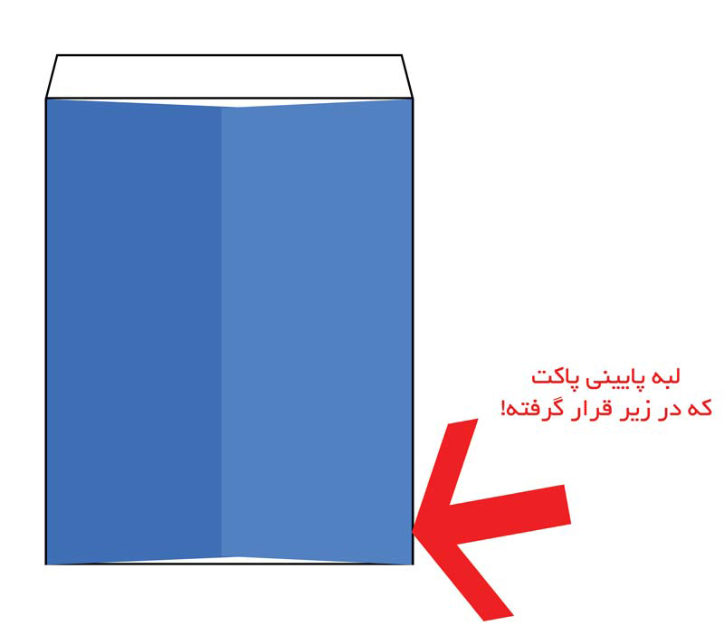 اگر پاکت شما از نوع صحافی کیسه ای (وسط چسب) باشد، توصیه می کنیم به نکات زیر توجه فرمایید: