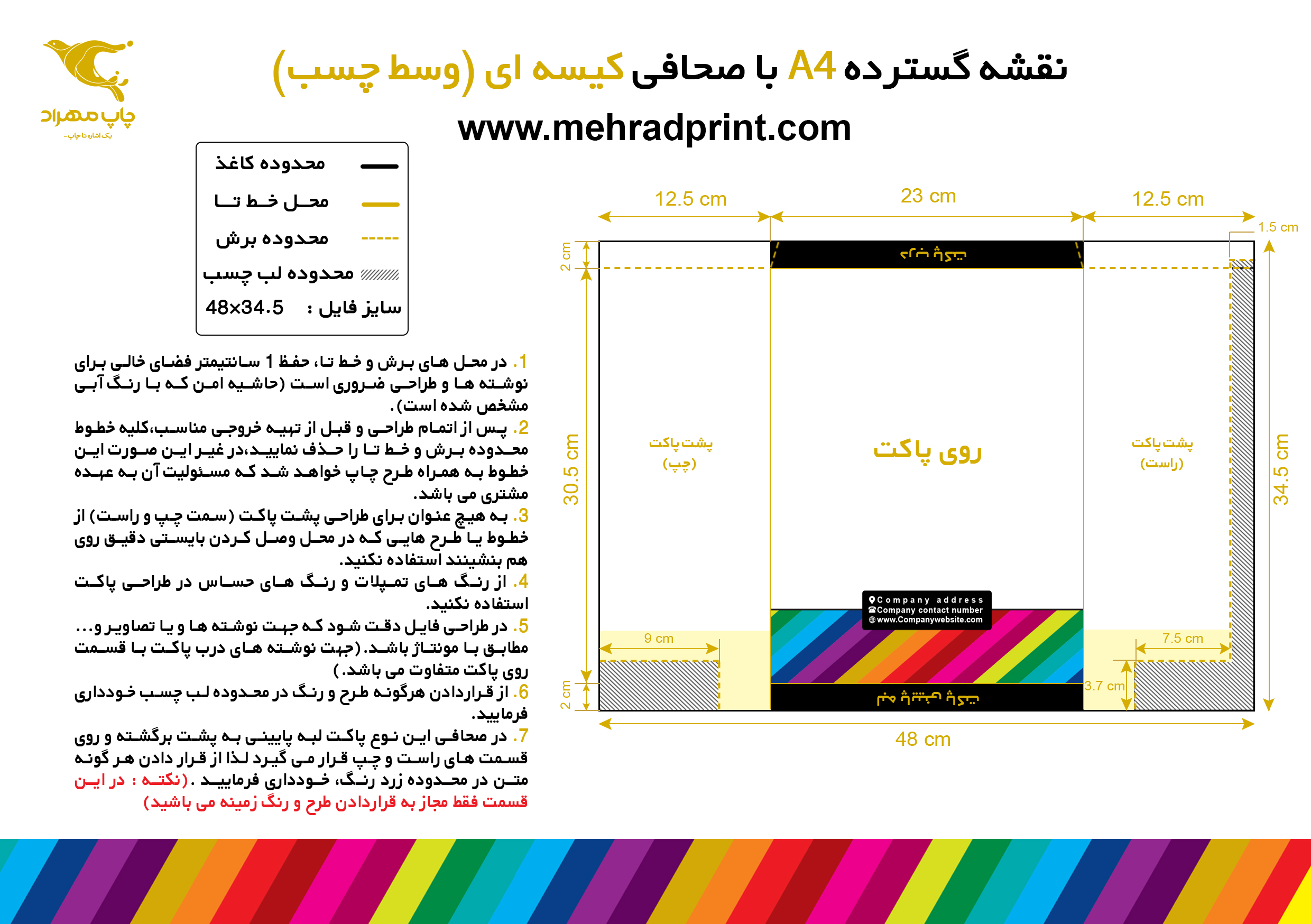 ✅ در ابعاد استاندارد، روی لبه پایینی پاکت نمی توان چاپ کرد. مگر اینکه حداقل 2 سانتیمتر از ارتفاع پاکت کاسته شود.