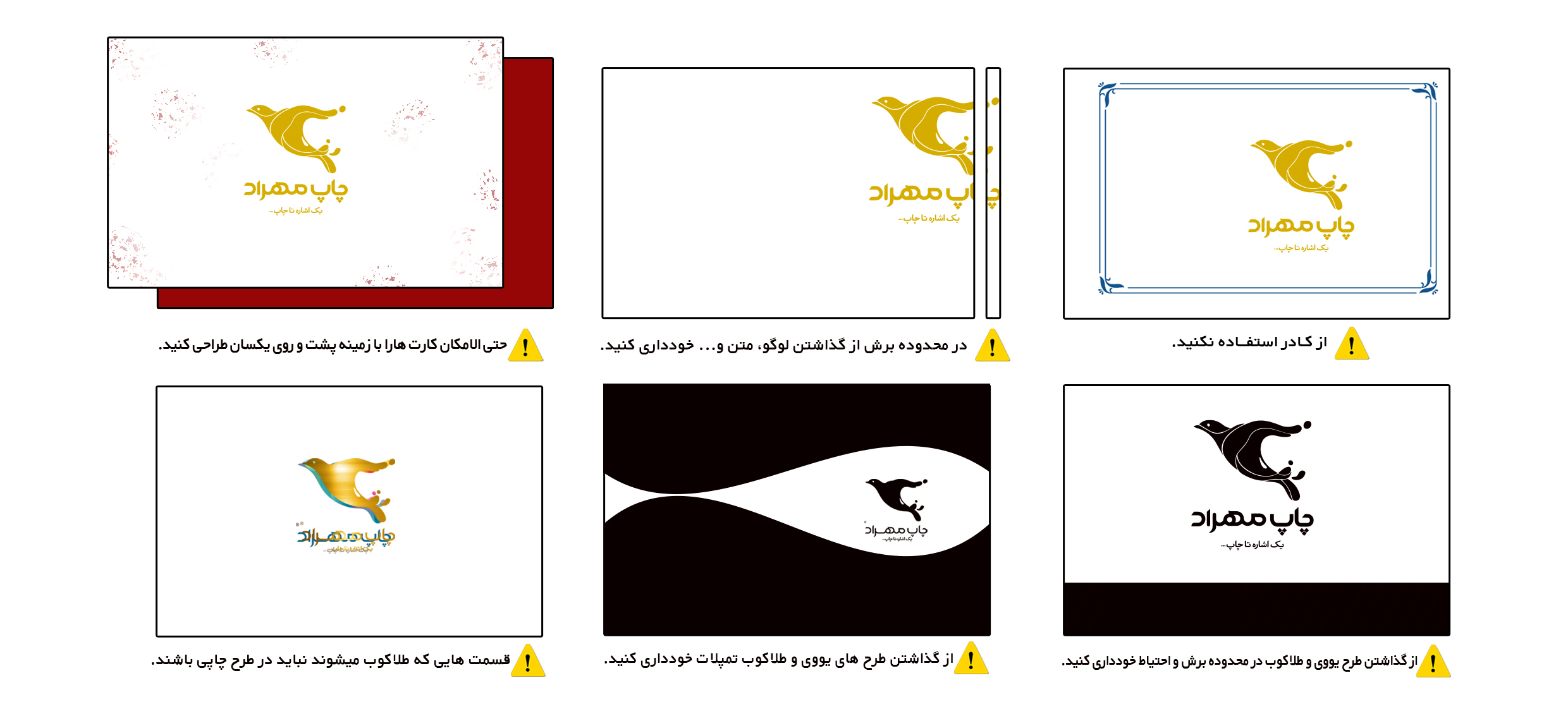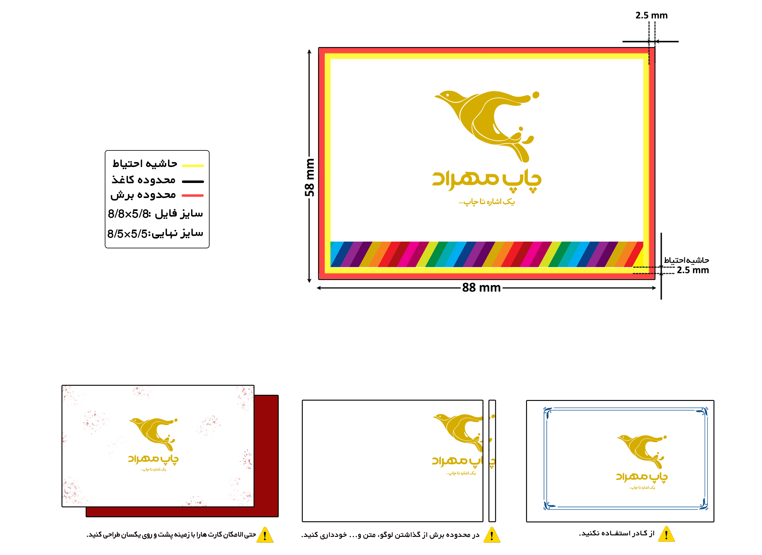 ● از قرار دادن هر نوع کادر در حاشیه طرح جداً خودداری نمایید. زیرا احتمال نامتقارن شدن کارت پس از برش وجود دارد.